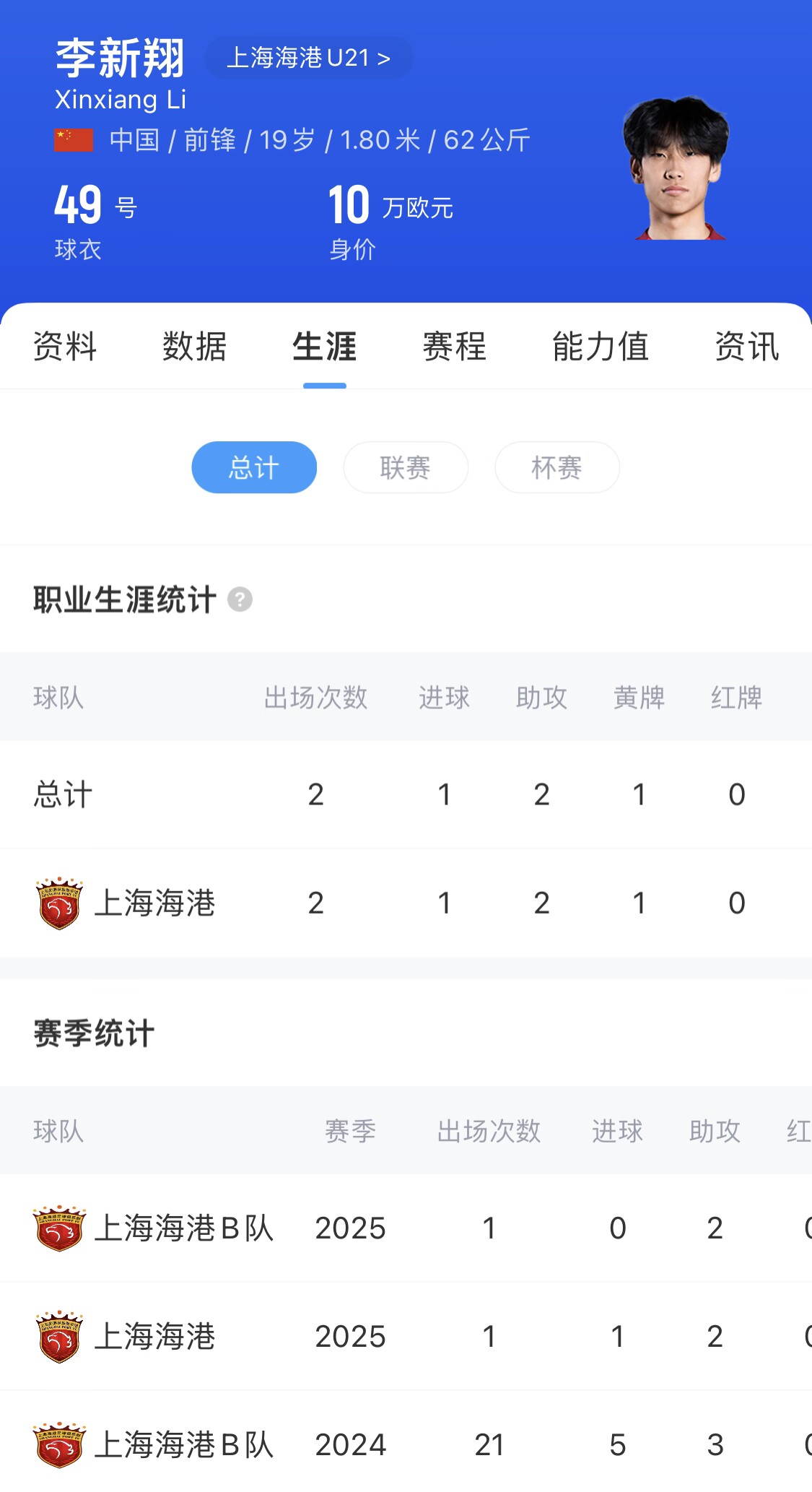 被遺漏了?海港19歲前鋒李新翔U系列國字號(hào)經(jīng)歷為0,未得到過征召