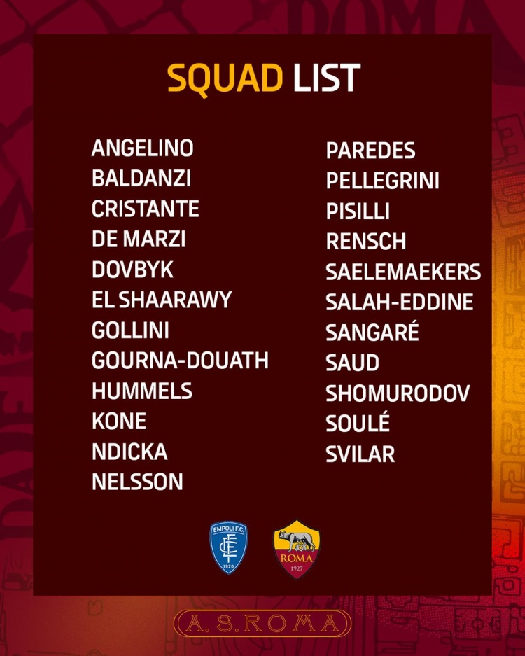 羅馬客戰(zhàn)恩波利名單:帕雷德斯回歸,迪巴拉缺席