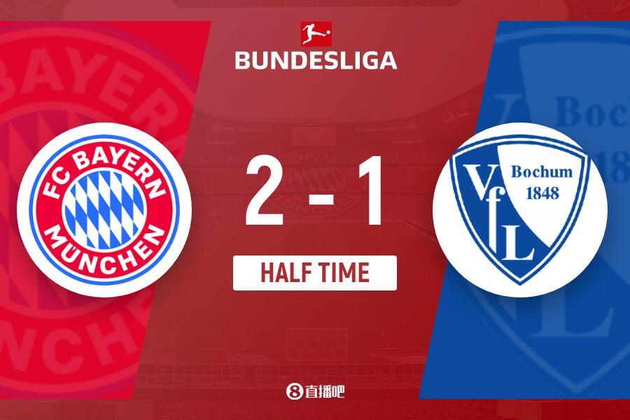 傷停補(bǔ)時(shí)3分鐘。上半場(chǎng)比賽結(jié)束,拜仁2-1領(lǐng)先波鴻。