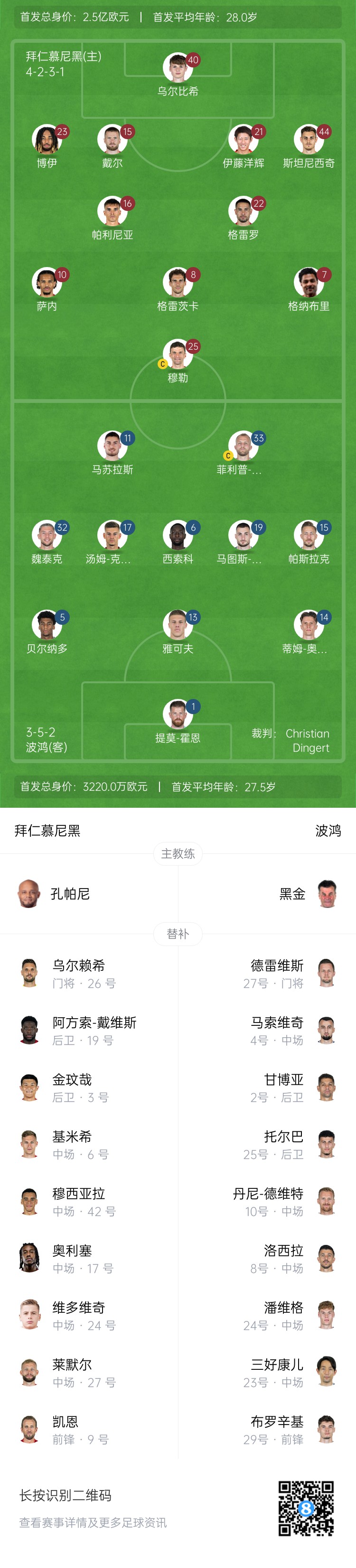 拜仁vs波鴻首發(fā):伊藤洋輝、薩內(nèi)先發(fā),烏爾比希出戰(zhàn),凱恩替補(bǔ)