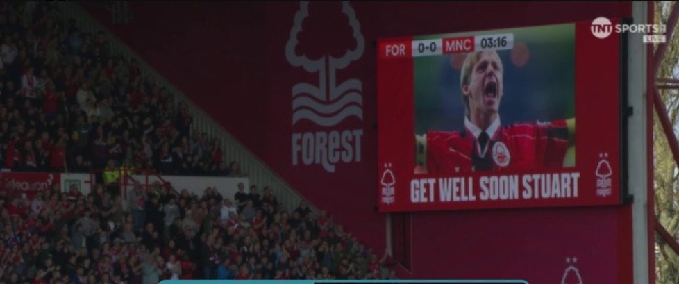 森林vs曼城賽中球迷鼓掌一分鐘,向因健康問題入院的皮爾斯送祝福
