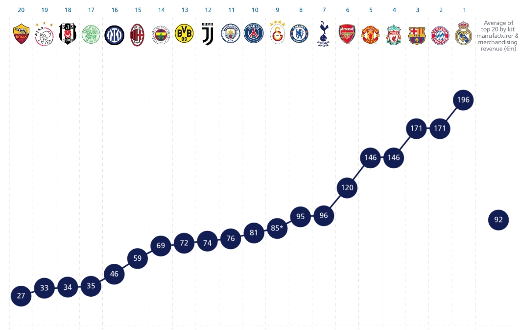 03月08日訊 根據(jù)歐足聯(lián)最新的財(cái)務(wù)報(bào)告顯示,皇馬去年以1.96億歐創(chuàng)下了球衣和商品銷售收入的新世界紀(jì)錄。