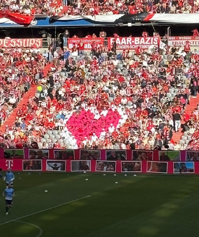 含多重含義!圖片報(bào):拜仁安聯(lián)球場看臺的T形圖案被心形圖案取代
