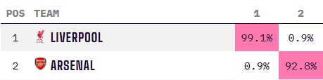 只剩西甲有懸念??五大聯(lián)賽奪冠概率:利物浦99%拜仁97%巴黎100%