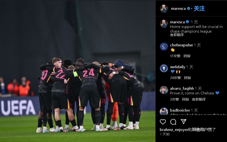馬雷斯卡社媒寫道:主場球迷的支持,是我們爭奪歐冠資格的動(dòng)力!(英超前四)