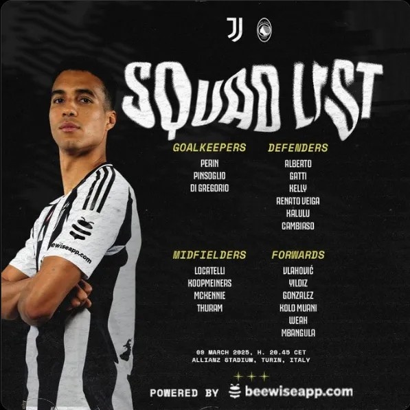3月9日訊 本輪意甲,3月10日3點(diǎn)45,尤文將在主場對陣亞特蘭大,賽前尤文公布比賽名單。