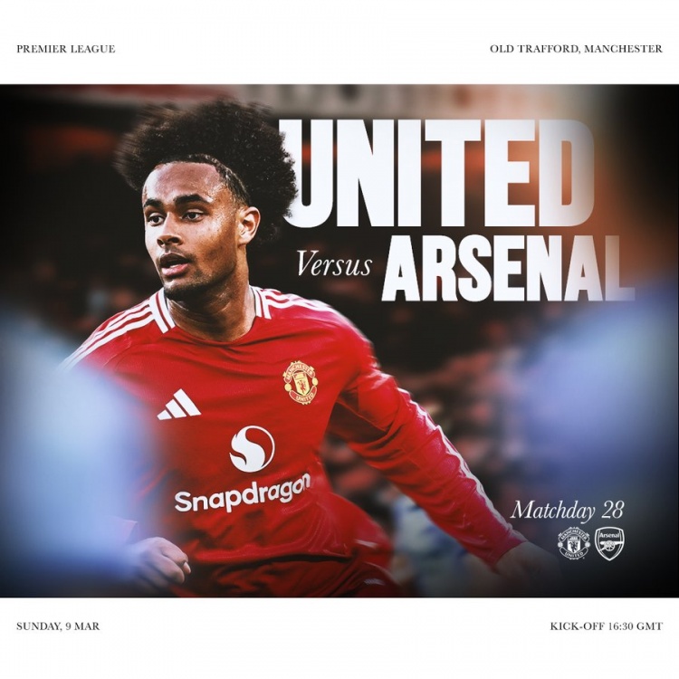 曼聯(lián)發(fā)布聯(lián)賽主場對陣阿森納海報:齊爾克澤單人出鏡