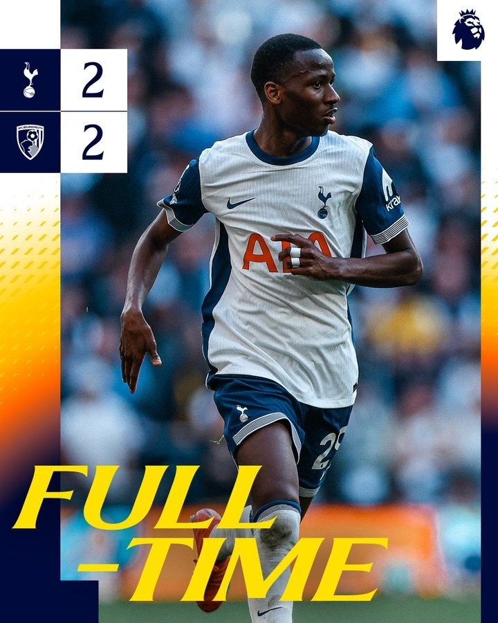 3月10日訊 本輪英超焦點(diǎn)戰(zhàn),熱刺在主場(chǎng)2球落后情況下最終戰(zhàn)平伯恩茅斯。