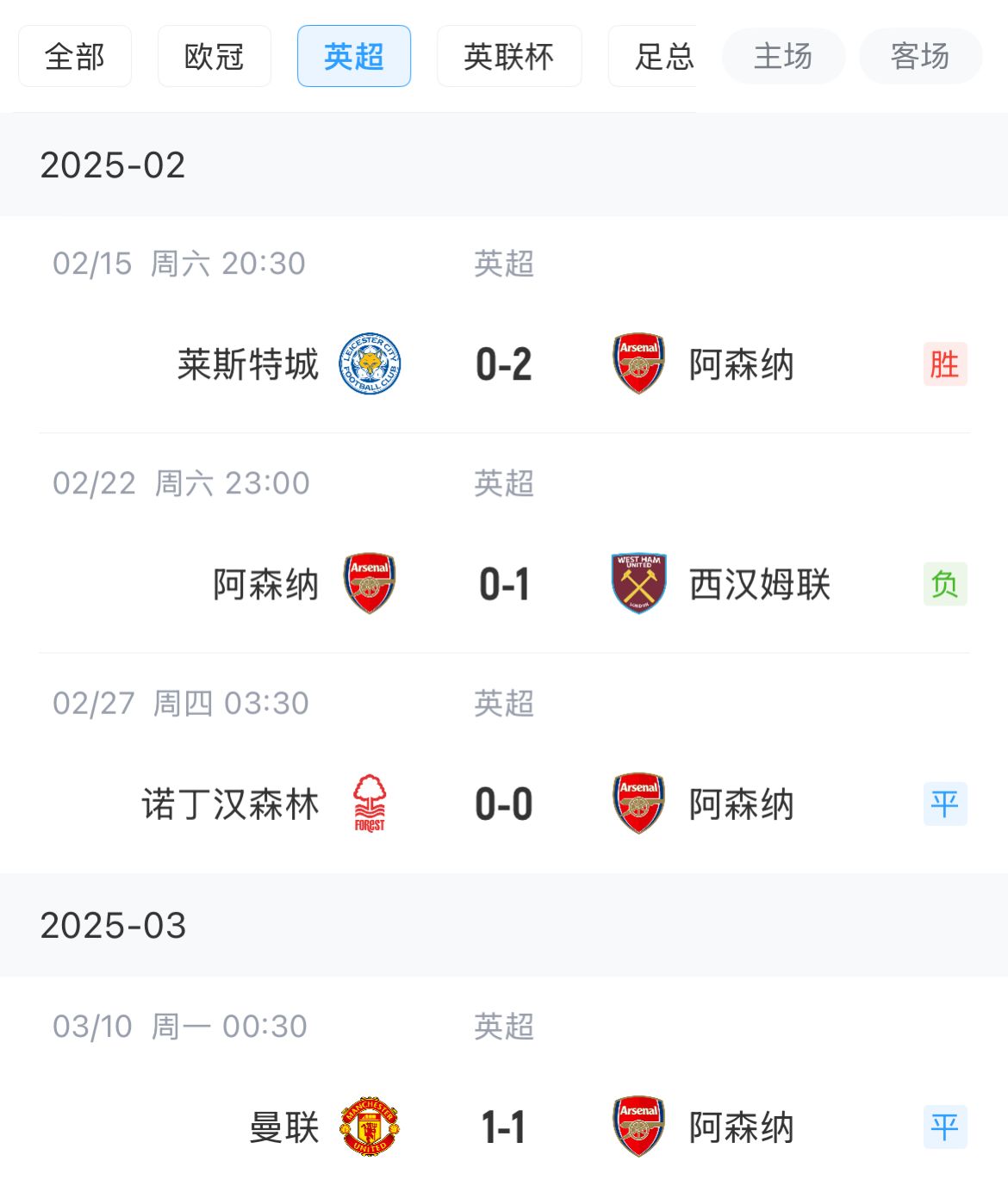 03月10日訊 本輪英超阿森納客場(chǎng)1-1戰(zhàn)平曼聯(lián),目前落后榜首15分,爭(zhēng)冠基本上是天方夜譚。