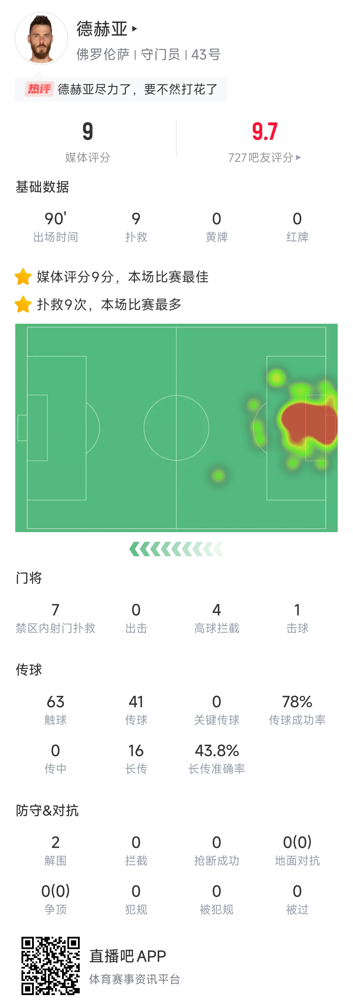 你撲你也麻!德赫亞被轟19腳僅丟2球,貢獻(xiàn)9撲救4攔截2解圍1擊球