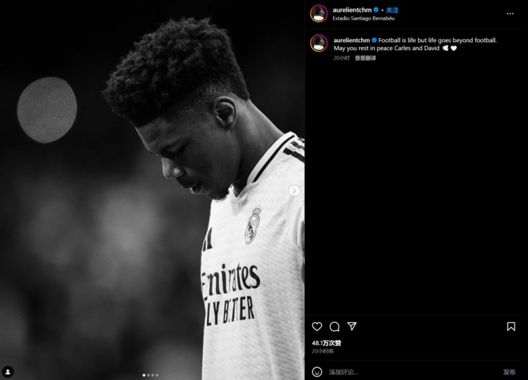 皇馬中場瓊阿梅尼社媒發(fā)文悼念逝者:“足球就是生命,但生命超越足球。愿你們安息,卡萊斯、大衛(wèi)?!?/p>