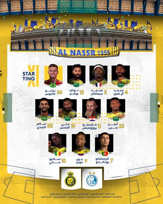 利雅得勝利vs德黑蘭獨(dú)立首發(fā):C羅領(lǐng)銜,杜蘭、馬內(nèi)先發(fā)