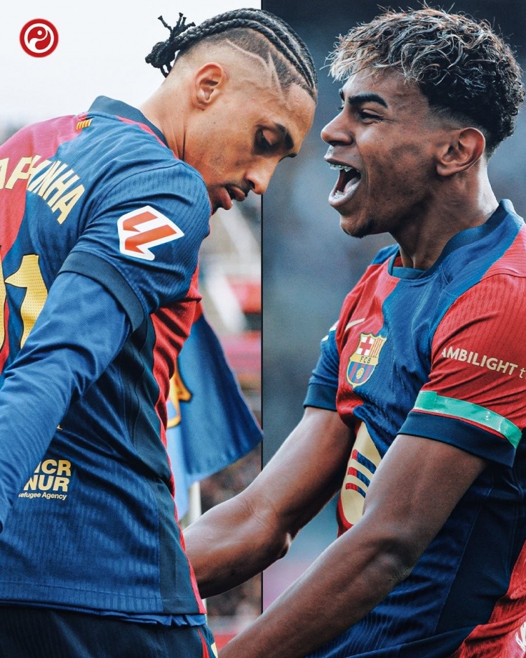 數(shù)據(jù)統(tǒng)計(jì)顯示,拉菲尼亞是本賽季西甲唯一在運(yùn)動戰(zhàn)能夠創(chuàng)造機(jī)會50+的球員(57次),他在26輪聯(lián)賽貢獻(xiàn)13球7助攻;亞馬爾本賽季成功過人高達(dá)95次,比其他西甲球員至少多出23次,也是本賽季西甲唯一助攻上雙的球員(11次)。