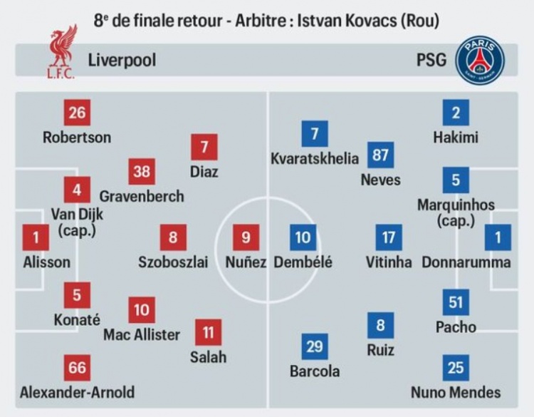 法媒預(yù)測(cè)利物浦vs巴黎首發(fā):薩拉赫對(duì)決登貝萊,努涅斯出戰(zhàn)