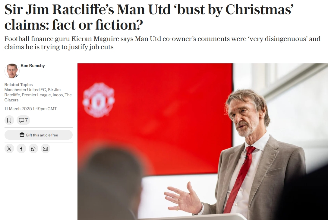 曼聯(lián)圣誕節(jié)前可能破產(chǎn)?財(cái)務(wù)專家:假透了,拉爵在為裁員找借口