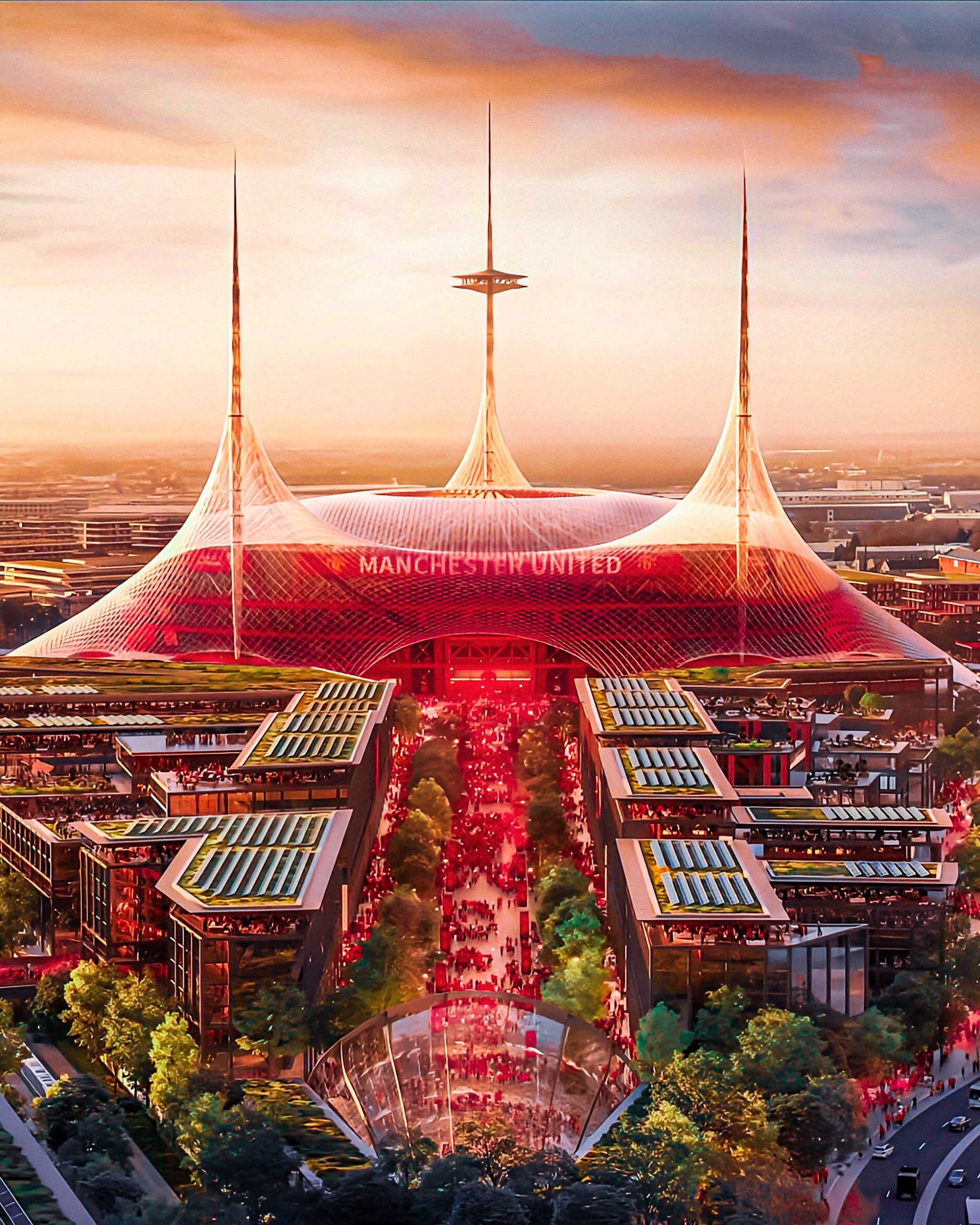 諾曼-福斯特勛爵闡釋設(shè)計理念:“這無疑是當(dāng)今世界最令人振奮的項目之一,具有重大的區(qū)域和國家級戰(zhàn)略意義。設(shè)計以球迷體驗為原點——通過縮短看臺與球場的距離,在聲學(xué)上營造出震撼的助威聲浪。體育場被巨型頂棚環(huán)抱,兼具能量收集與雨水回收功能,其下方是兩倍于特拉法加廣場規(guī)模的公共廣場。這座外向型體育場將成為全新可持續(xù)發(fā)展社區(qū)的核心,打造全步行化、公交導(dǎo)向、生態(tài)融合的未來微型城市,締造曼徹斯特人引以為傲的全球新地標(biāo)?!?/p>
