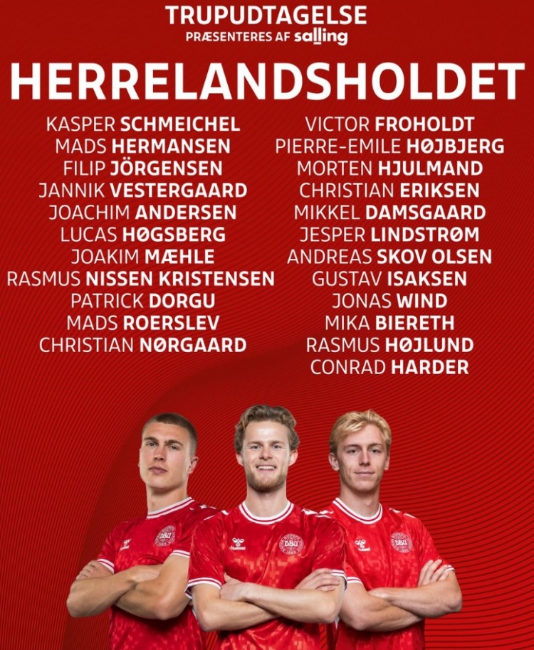 丹麥公布國家隊(duì)球員名單,霍伊倫領(lǐng)銜,小舒梅切爾、埃里克森在列