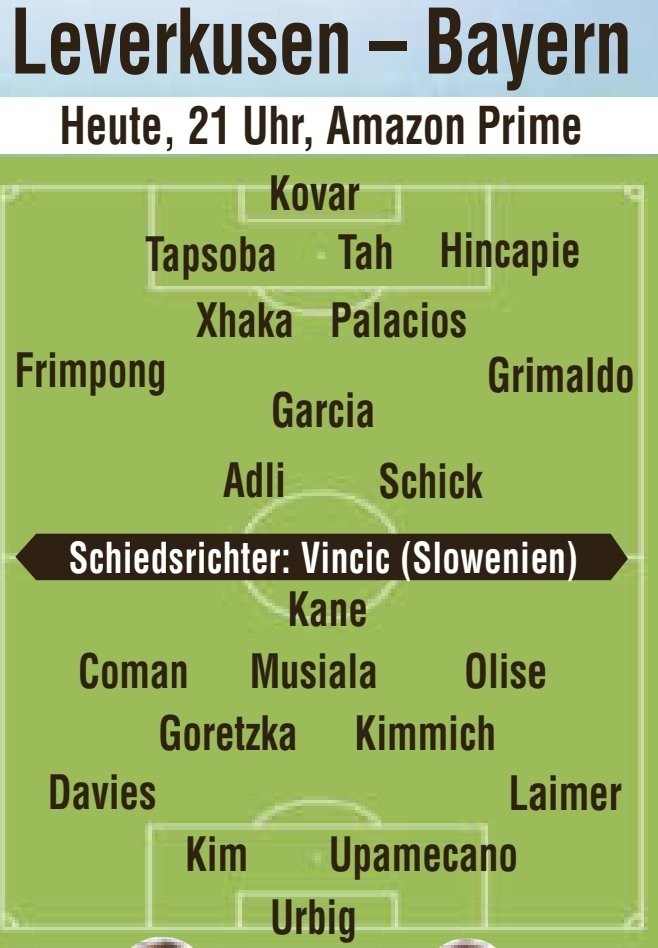 圖片報(bào)預(yù)測(cè)藥廠vs拜仁首發(fā):二門科瓦爾PK烏爾比希,??藙P恩對(duì)決