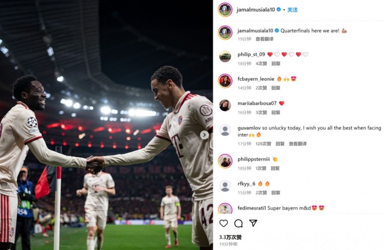 將戰(zhàn)國(guó)米!穆西亞拉社媒曬與戴維斯握手照:八強(qiáng)戰(zhàn)我們來(lái)了!