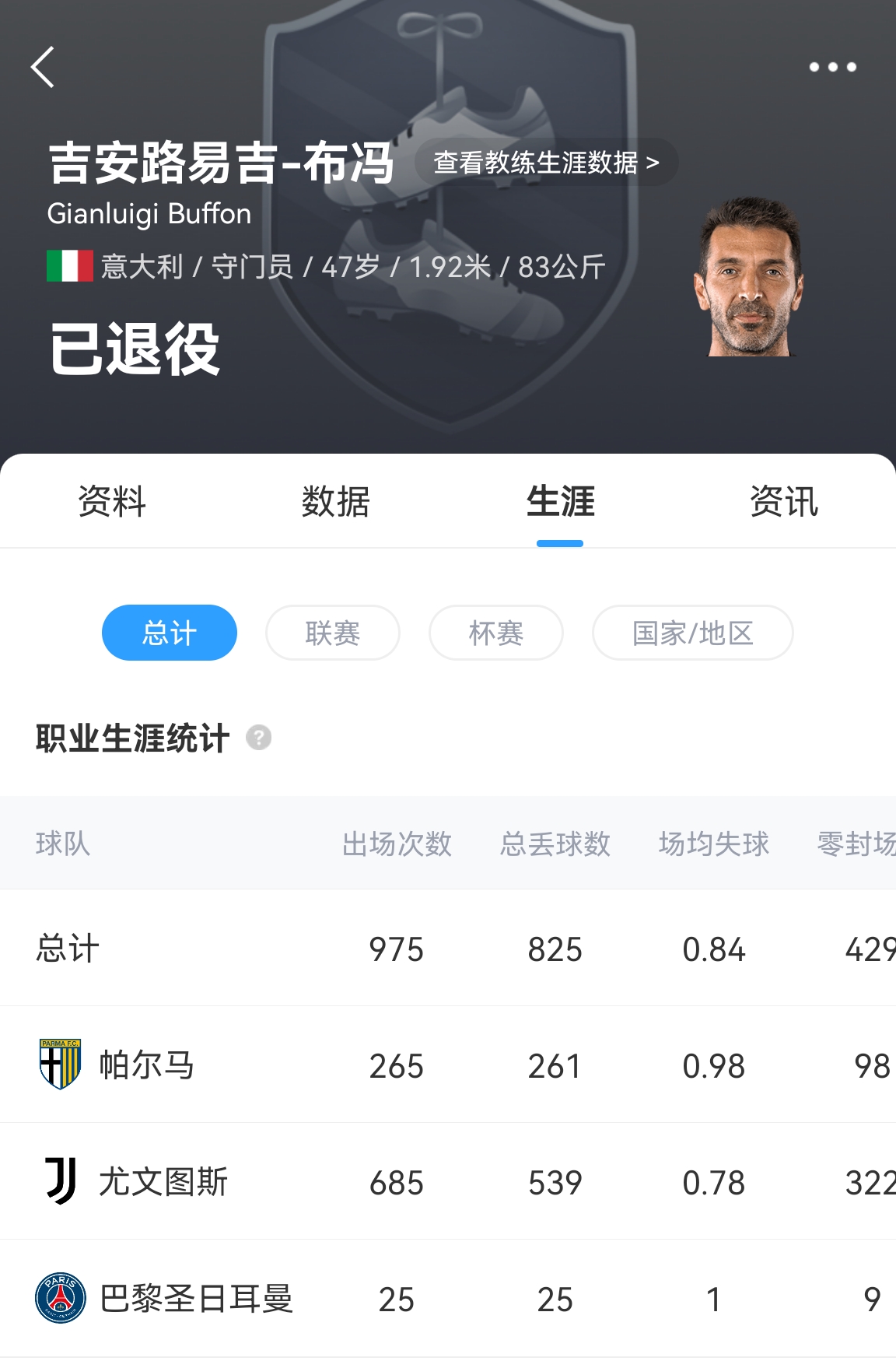 2023年8月45歲的布馮宣布退役時,他的俱樂部出場數(shù)達(dá)到了975場,國家隊(duì)出場數(shù)達(dá)到了176次。