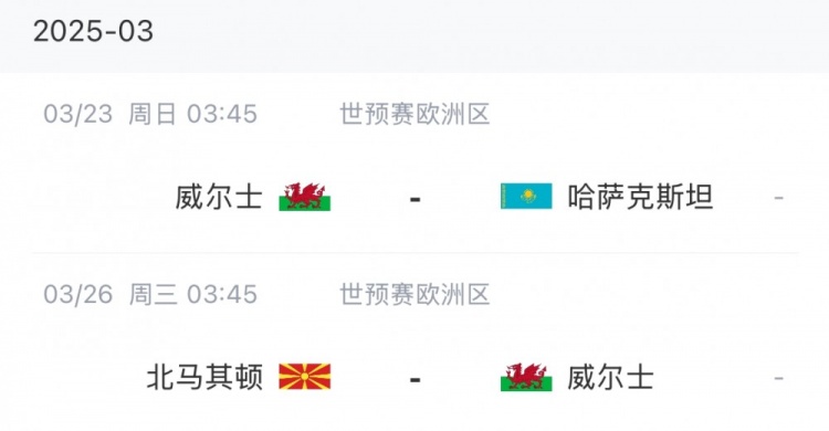 威爾士賽程: