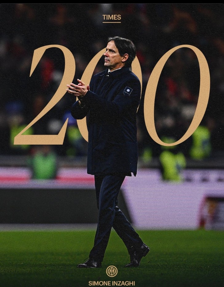 本場比賽也是主帥小因扎吉執(zhí)教國米各項賽事第200場里程碑之戰(zhàn),球隊官方也曬照紀念。