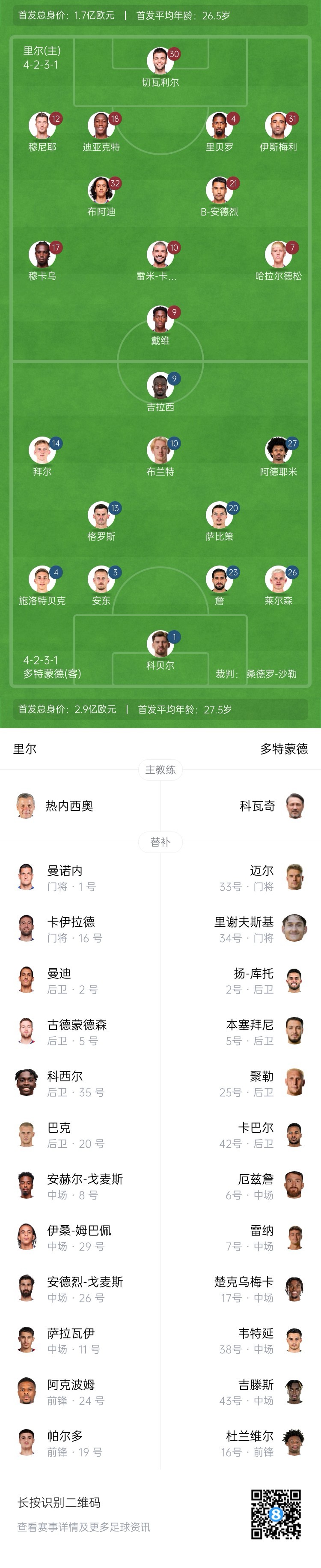 多特vs里爾首發(fā):吉拉西、阿德耶米、布蘭特先發(fā),拜爾出戰(zhàn)