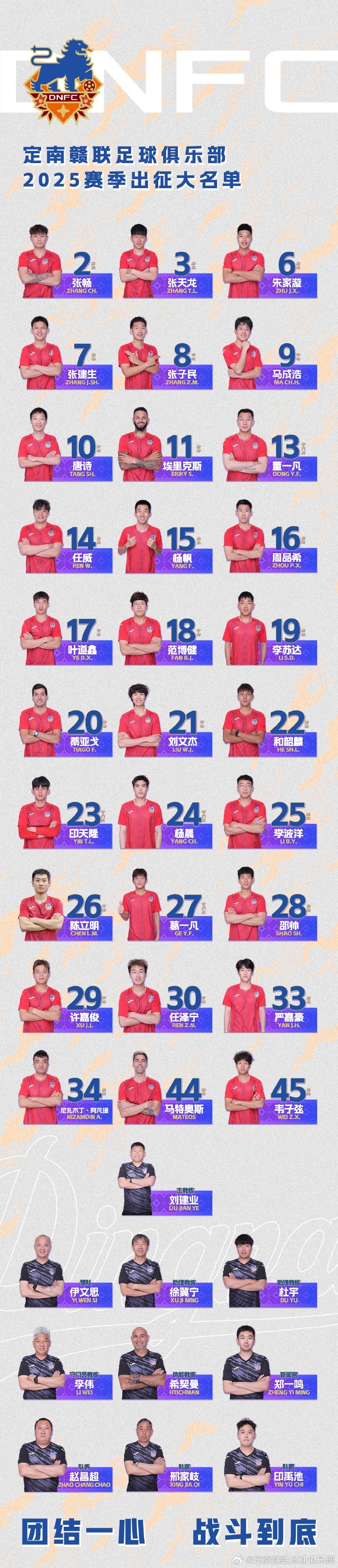3月13日訊 定南贛聯(lián)俱樂部公布了新賽季一線隊(duì)名單,球隊(duì)由劉建業(yè)掛帥,共30名球員入選,其中唐詩身披10號(hào)。