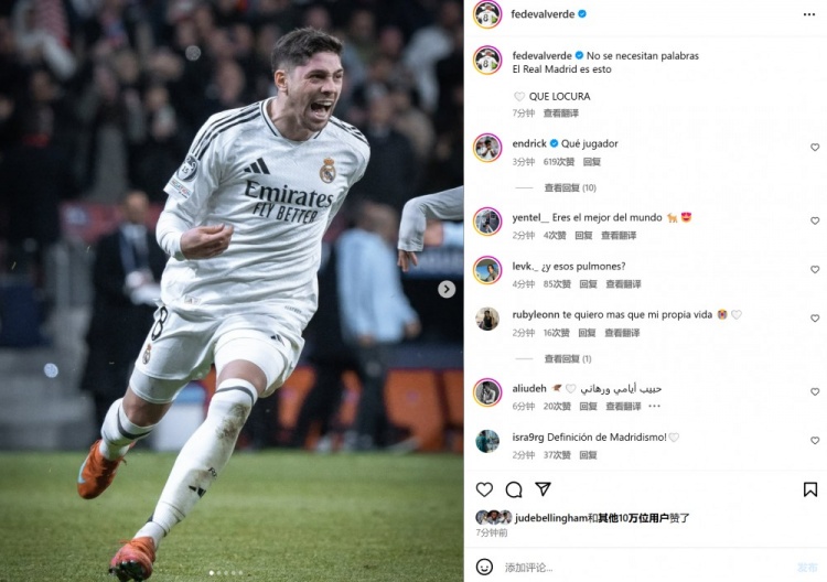 本場比賽巴爾韋德首發(fā)出戰(zhàn)表現(xiàn)出色,在點球大戰(zhàn)中也穩(wěn)穩(wěn)命中,賽后他在個人社媒曬出慶祝照,配文寫道:“無需多言,這就是皇馬,太瘋狂了!”