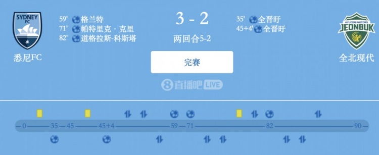 比賽最后階段,道格拉斯-科斯塔點(diǎn)球破門,最終悉尼FC主場(chǎng)3-2擊敗全北現(xiàn)代,總比分5-2晉級(jí)四強(qiáng)。