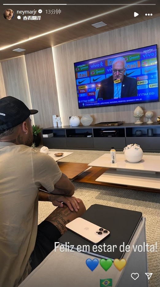 內(nèi)馬爾曬照觀看巴西隊(duì)大名單公布儀式:很高興回歸!