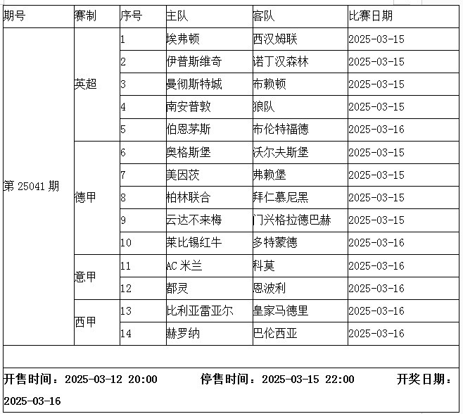 本周末的 傳足勝負(fù)彩第25041期中不乏焦點(diǎn):英超,曼城主場對陣布賴頓;德甲,拜仁慕尼黑客場出征柏林;意甲,AC米蘭主場迎戰(zhàn)科莫;西甲,皇馬做客對壘比利亞雷亞爾。
