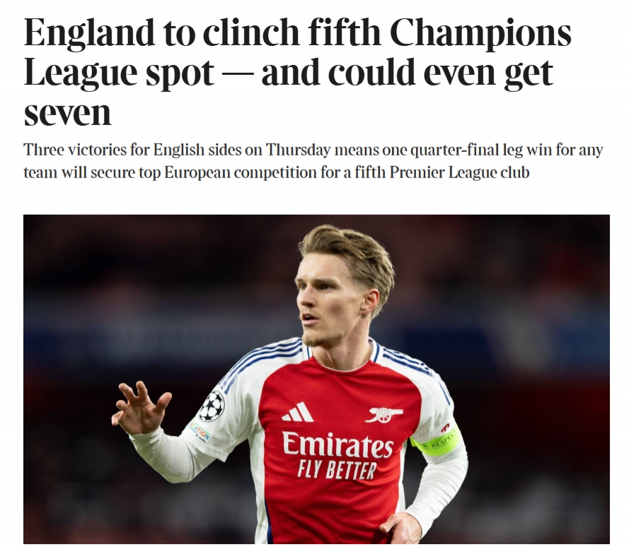 英超基本鎖定第五個歐冠名額,《泰晤士報》指出,理論情況下英超下賽季最多可以有7支球隊參加歐冠!