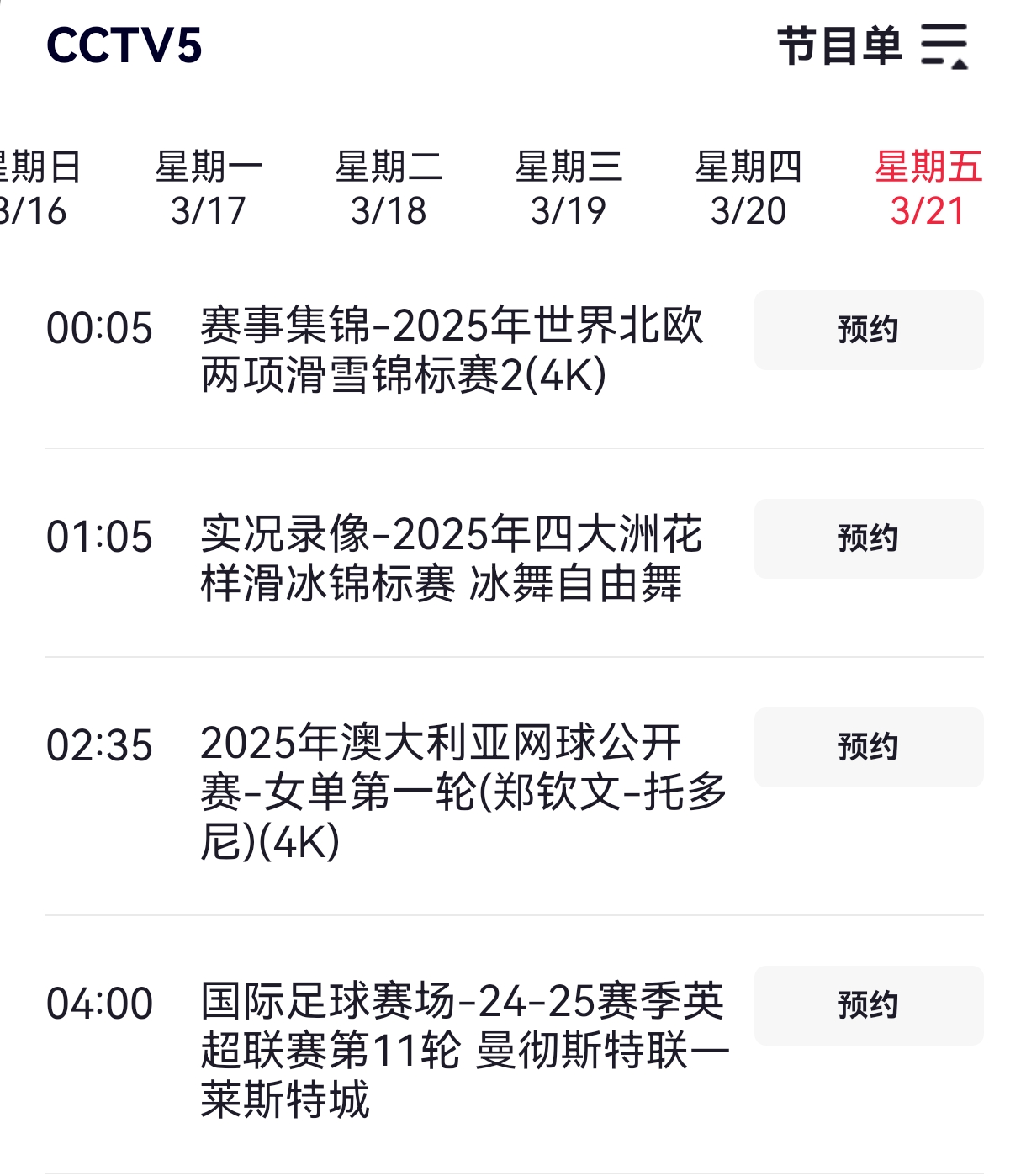 央視今日更新了3月21日節(jié)目單,在2:15的檔期上,5臺(tái)、5+臺(tái)和16臺(tái)均無國(guó)足比賽。