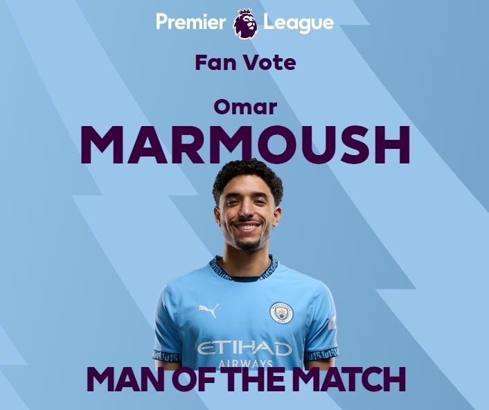 造點+世界波!官方:馬爾穆什被票選為曼城vs布萊頓全場最佳