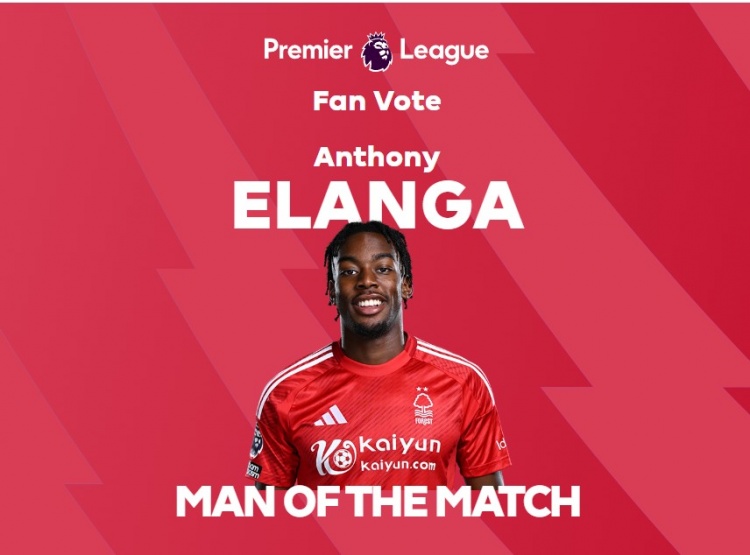 梅開(kāi)二度!官方:伊蘭加被票選為諾丁漢森林vs伊鎮(zhèn)全場(chǎng)最佳