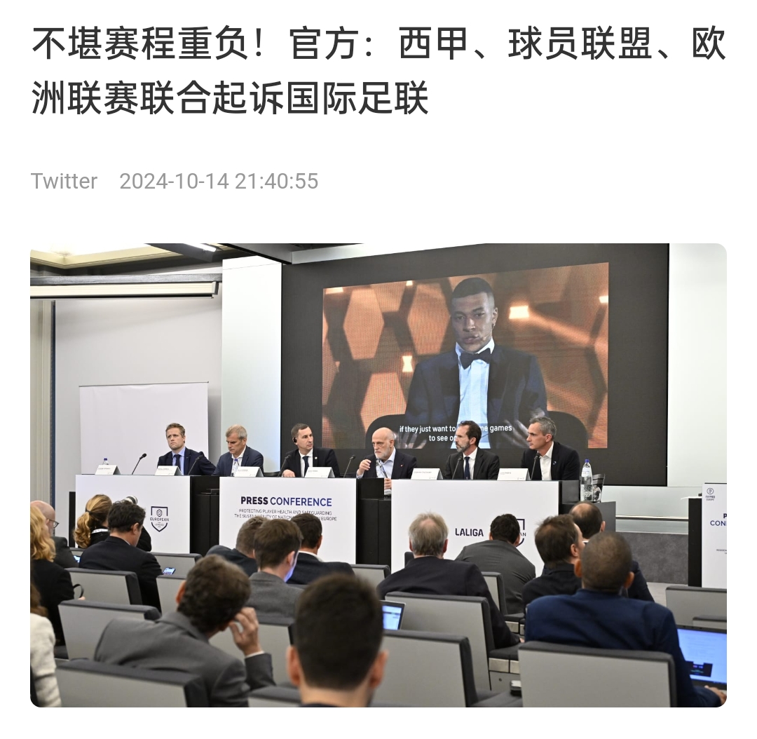 實際上,近年來密集賽程已經(jīng)在歐洲足壇引發(fā)了廣泛的不滿。五大聯(lián)賽的球員、主帥以及高層都在呼吁賽程改革。甚至要采取狀告和罷工的方式尋求改變。