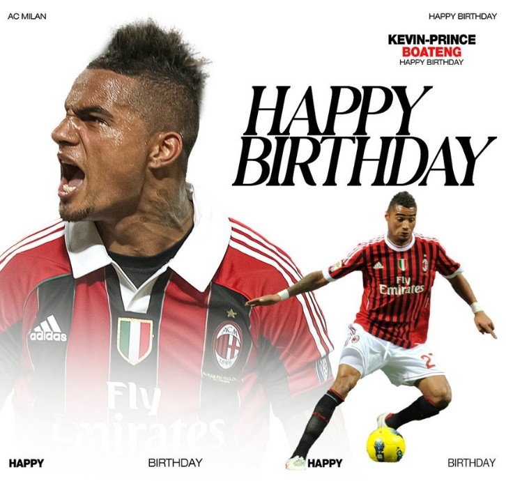3月6日訊 今天是凱文-博阿滕38歲生日,AC米蘭官方也制作海報(bào)為這位球隊(duì)舊將送上生日祝福。
