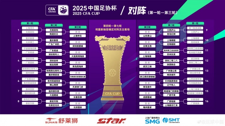 3月16日訊 2025賽季中國(guó)足協(xié)杯第1輪結(jié)束爭(zhēng)奪,16支晉級(jí)球隊(duì)產(chǎn)生,他們?cè)诘诙唽⒚鎸?duì)中甲球隊(duì)。
