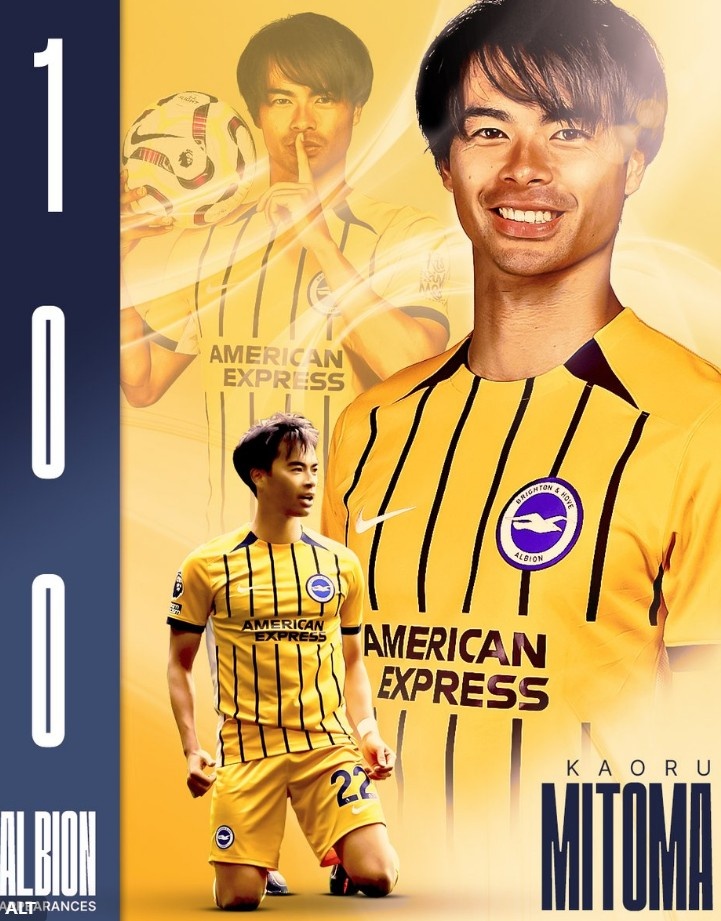 21球15助,布萊頓官方曬海報祝賀三笘薫達成100次出場里程碑