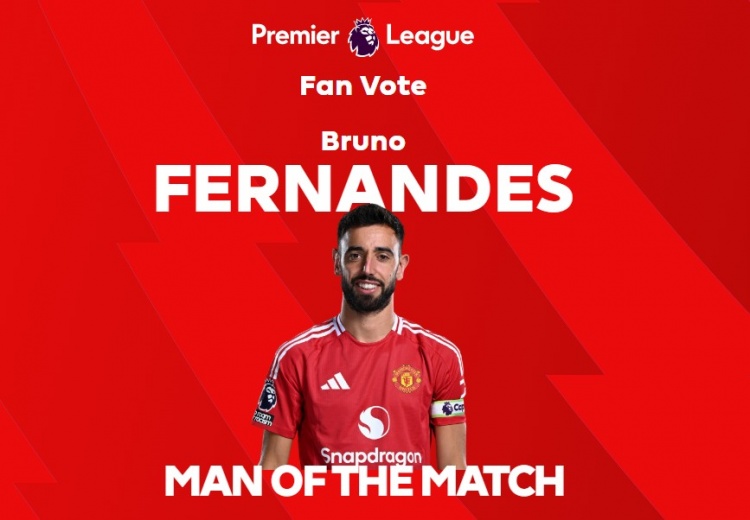 1射2傳,英超官方:B費(fèi)當(dāng)選曼聯(lián)3-0萊斯特城全場(chǎng)最佳