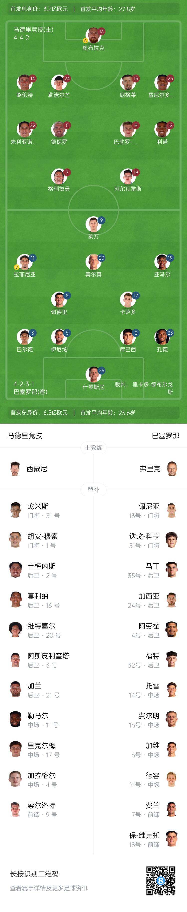 馬競vs巴薩首發(fā):小蜘蛛、格列茲曼先發(fā),萊萬、亞馬爾出戰(zhàn)