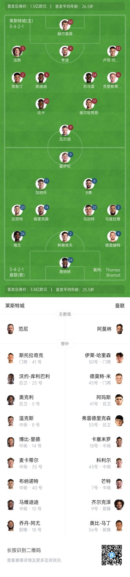 本場比賽,芒特傷愈復(fù)出、替補待命。對此,阿莫林說道:“雖然他還是一名年輕球員,但在英超的經(jīng)驗已經(jīng)很豐富了。我很高興又有一名球員復(fù)出?!?/span>