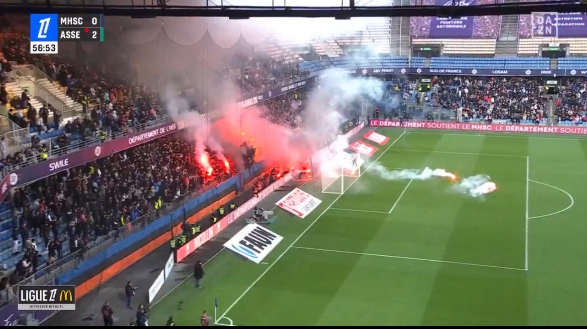 官方:因球迷放煙花引發(fā)小型火災,蒙彼利埃vs圣埃蒂安比賽腰斬