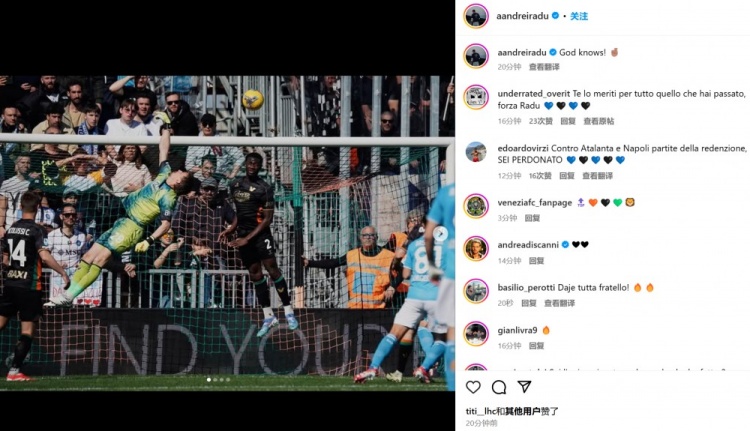 他也在賽后通過社媒曬出比賽照慶祝并配文:“只有上帝明白!”。拉杜在此前效力國米時,曾因為爭冠關(guān)鍵戰(zhàn)失誤導(dǎo)致球隊最終未能奪得冠軍。