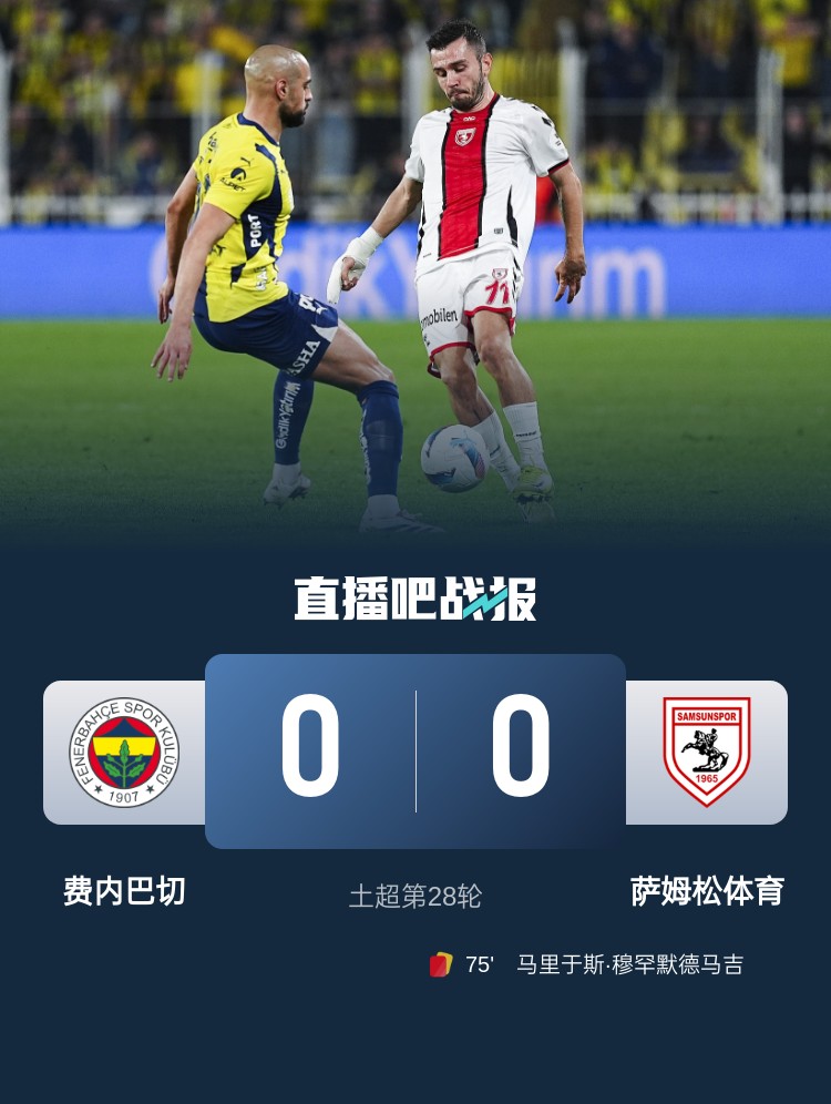 03月17日訊 今天凌晨土超第28輪,費(fèi)內(nèi)巴切0-0打平薩姆松體育,少賽一場(chǎng)的情況下,落后榜首9分。