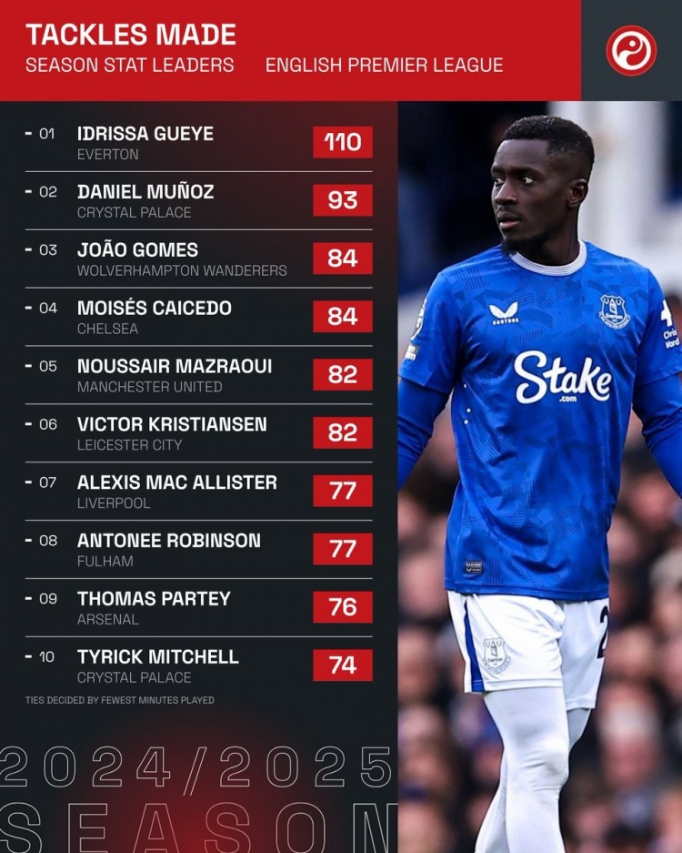 3月18日訊 國家隊(duì)比賽周到來,英超也暫時(shí)告一段落,squakwa統(tǒng)計(jì)了本賽季英超成功搶斷情況,蓋耶獨(dú)自領(lǐng)跑。