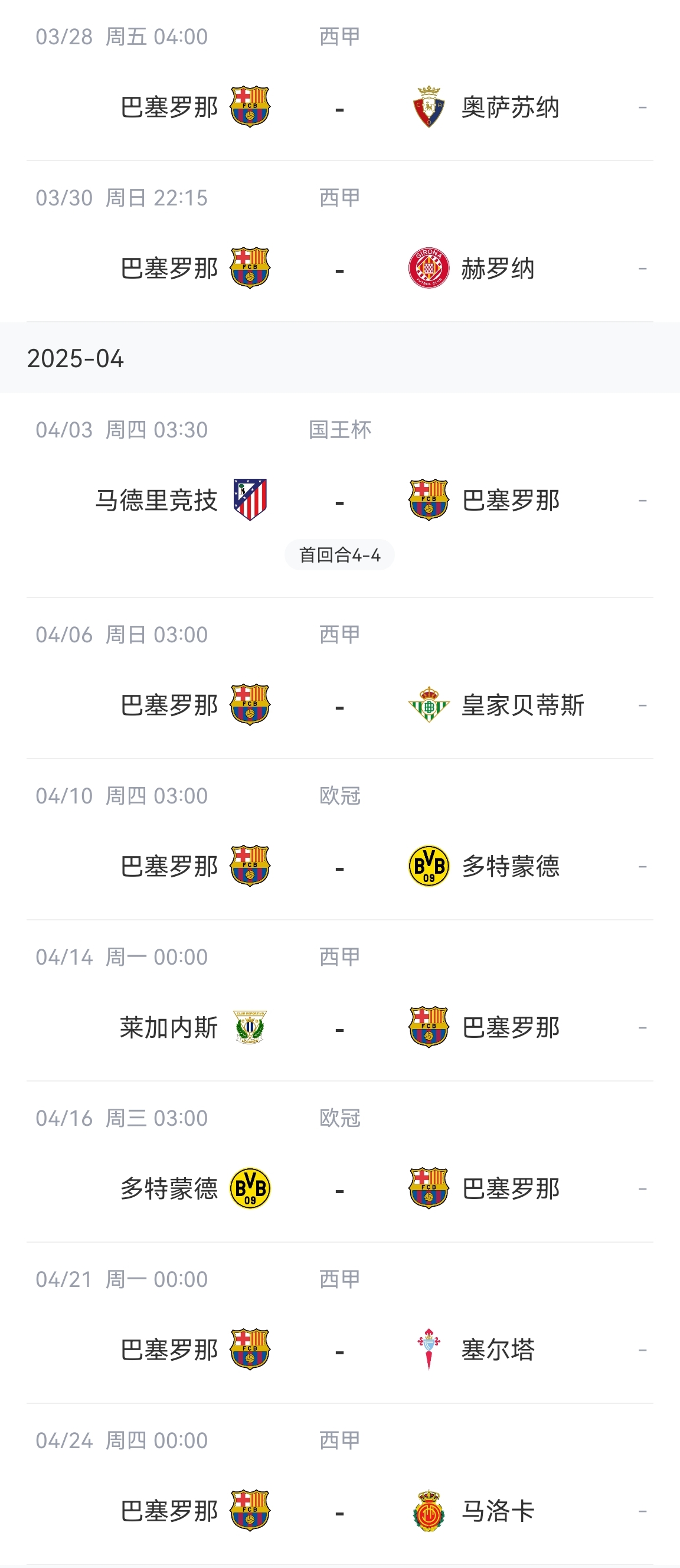 巴薩賽程